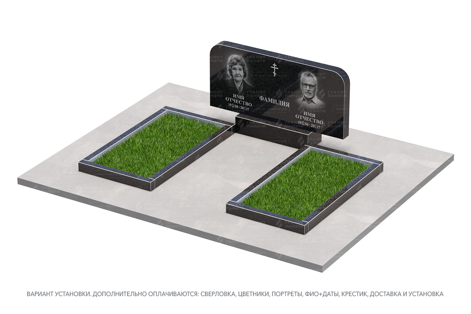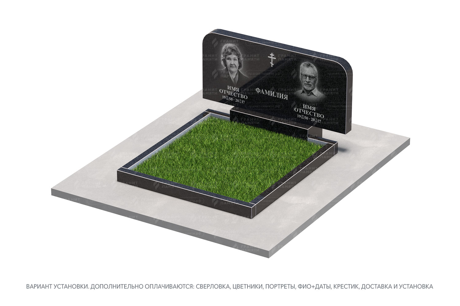цветник, сверловка, портрет, ФИО+даты, крестик, доставка, установка.