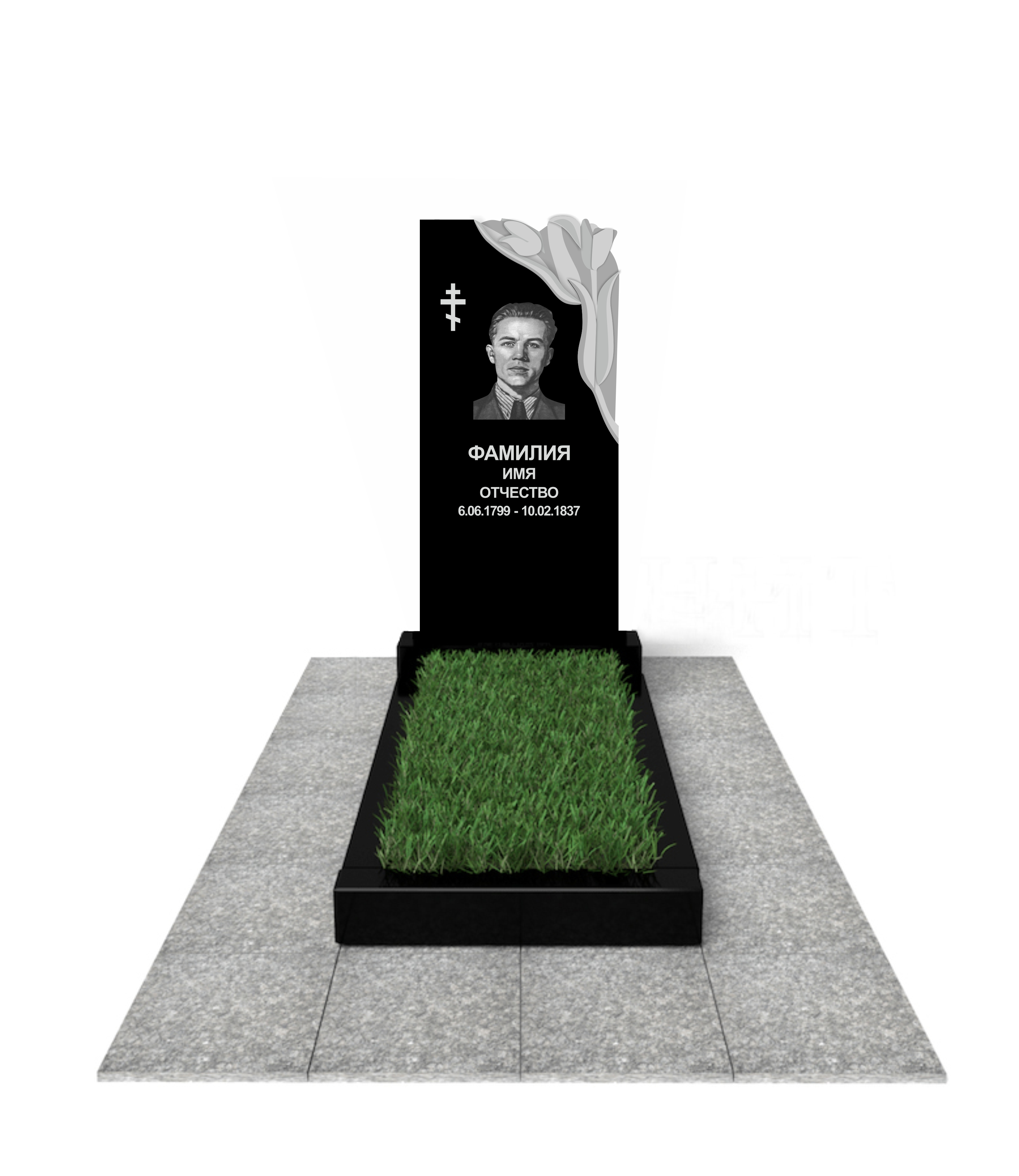 цветник, сверловка, портрет, ФИО+даты, крестик, доставка, установка.