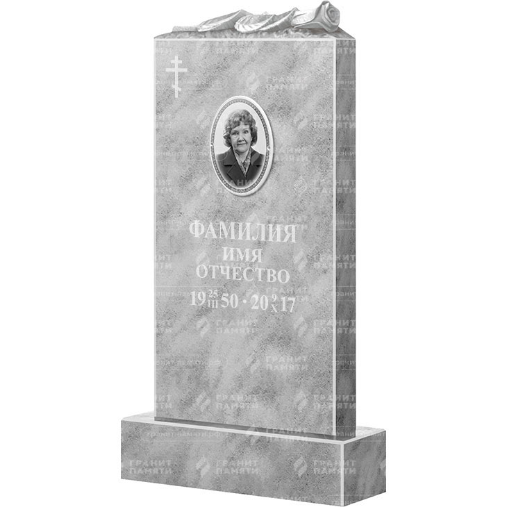 Памятник резной универсален. Форма ФМ-105 подходит для увековечивания памяти и мужчины и женщины. Памятник из натурального Мрамор не изменит своего первозданного вида многие десятилетия.