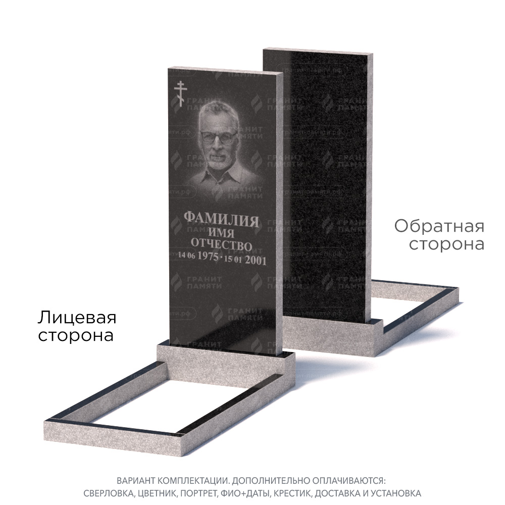 цветник, сверловка, портрет, ФИО+даты, крестик, доставка, установка.